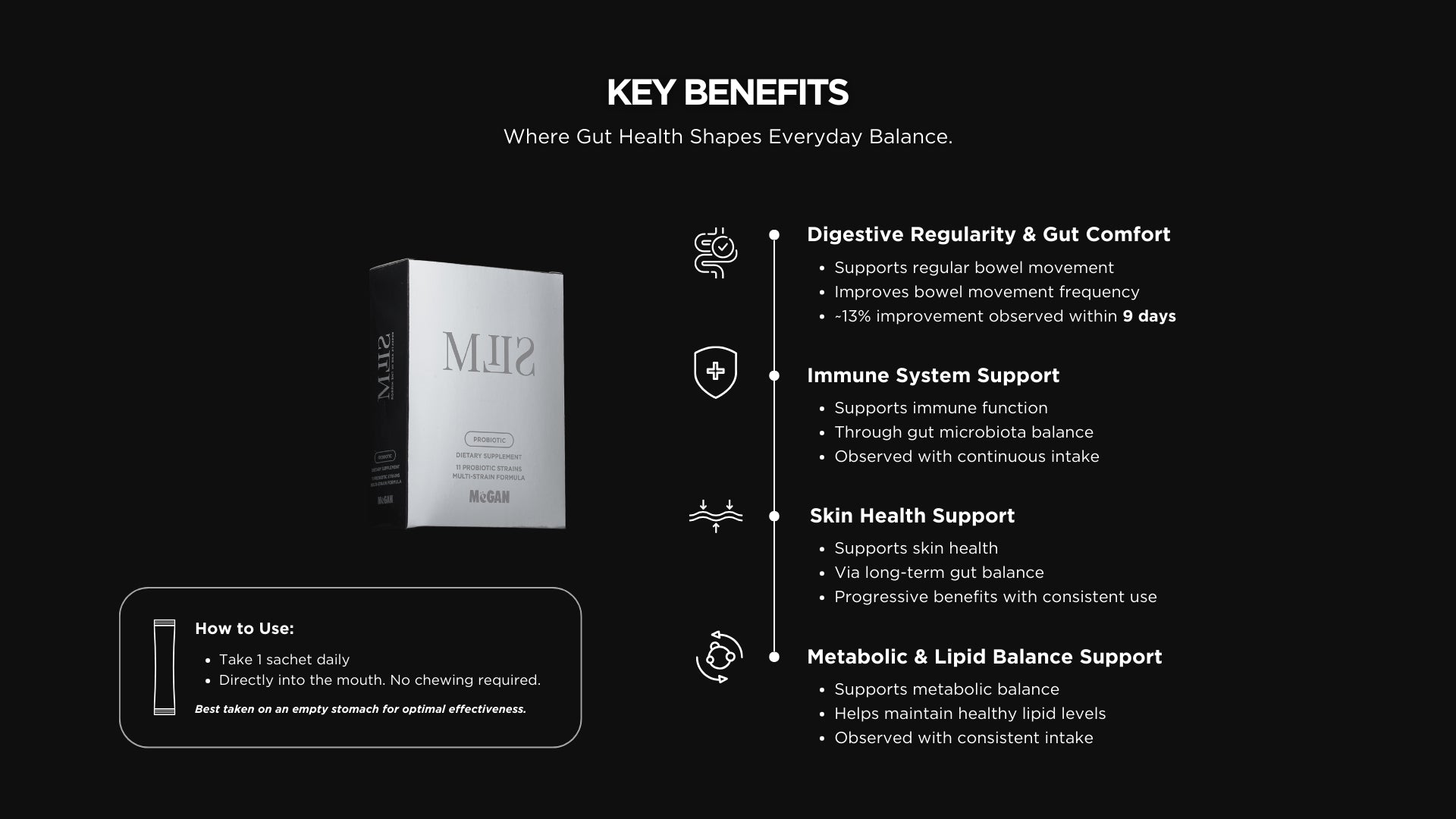 MILS is crafted to support beneficial bacteria, help them thrive, and allow them to work effectively inside the gut — all in one simple daily routine.